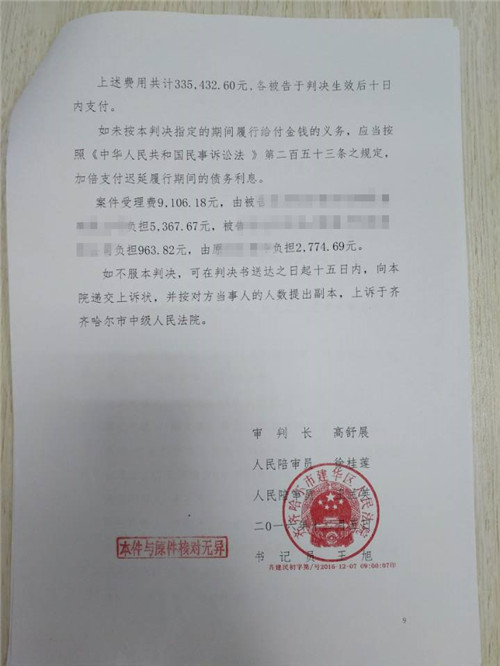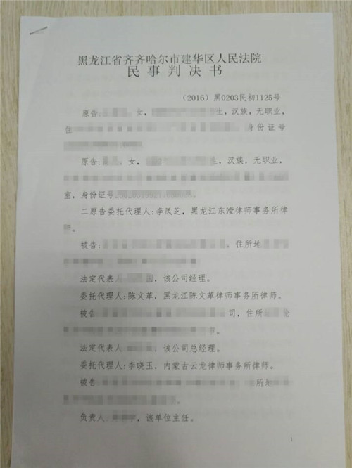 齐齐哈尔市建华区人民法院民事判决书