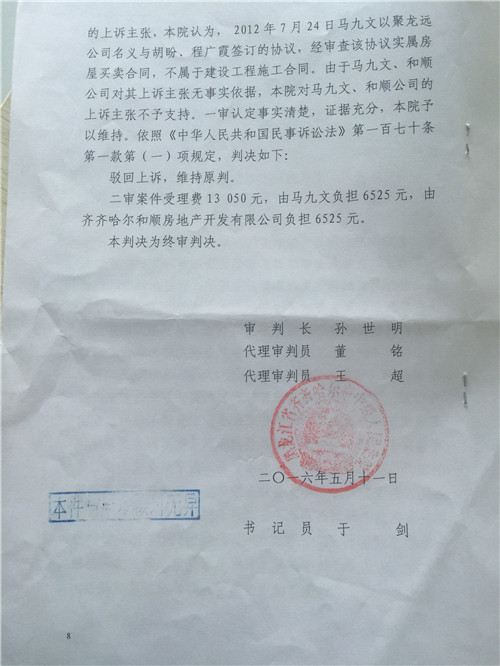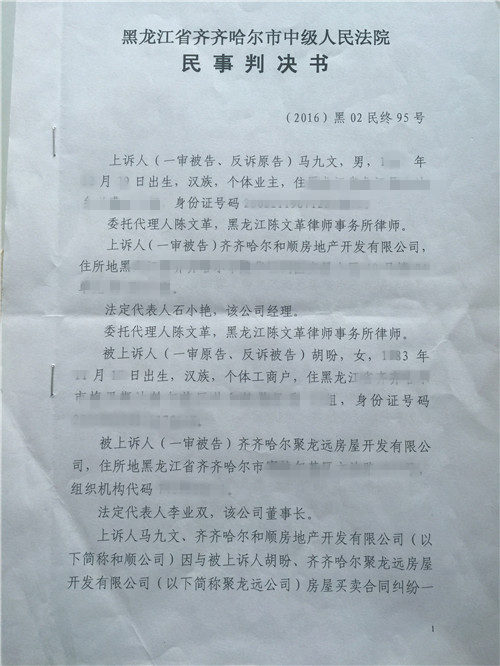 黑龙江省齐市中院房屋买卖合同纠纷(2016)黑02民终95号