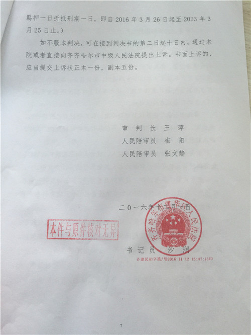 黑龙江省齐市建华区人民法院盗窃罪一案(2016)黑0203刑初282号