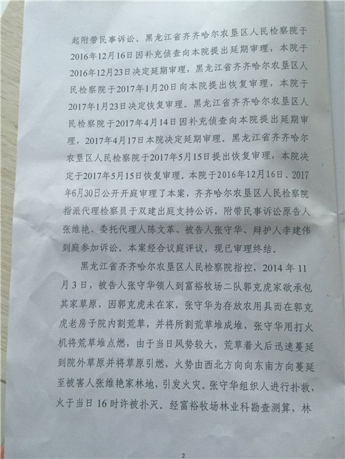 黑龙江省齐齐哈尔农垦法院失火罪附带民事判决(2016)黑8107刑初51号