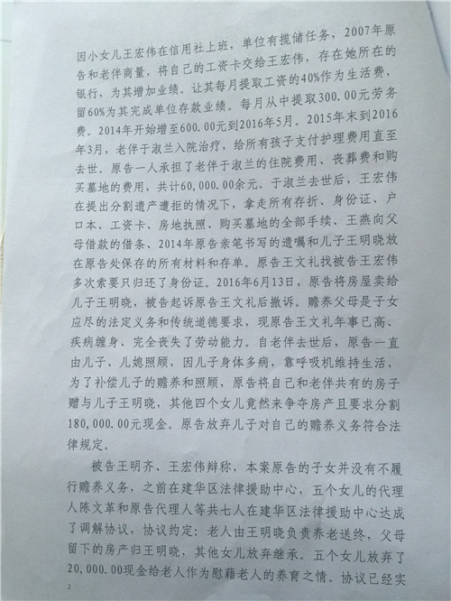 黑龙江省齐市建华区人民法院赡养纠纷(2017)黑0203民初604号