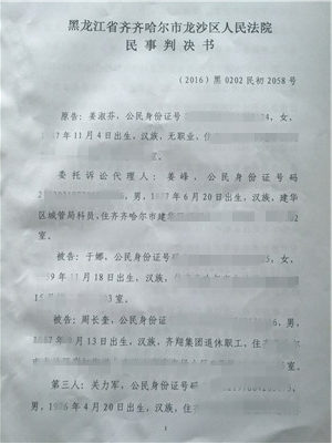 黑龙江省齐市龙沙区人民法院物权保护纠纷(2016)黑0202民初2058号